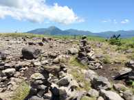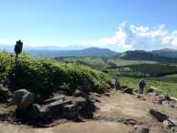 車山まで、周囲の山々や富士山、高山植物に見とれ、ものすっごく時間をかけて歩きました(笑)。 ここでトラブル発生。同行者さんが首にかけていた汗拭きタオルマフラーをどこかで落としてしまったそうで、引き返して探すので先に車山山頂へ行って待っていてほしいと、数十m離れた場所から言われました。ちょっと心細いけど、車山山頂はリフトで来た家族連れも大勢いるから大丈夫でしょう。 |
