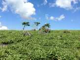 | 物見石を過ぎてからしばらくして、ふと気づくと周囲に段々と木立ちが現れ始めました。 鎌ヶ池キャンプ場へ向けて下りの道になると、はっきりと木々が増えて、林の中になり、風が遮られて蒸し暑く感じました。 |