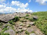 | 車山乗越付近で、前方に蝶々深山へ登る林間学校で来ていると思われる学生の一団を発見。賑やかに楽しそうに歩いています。 急ぐ山行でもないので、ゆっくり行きましょう。 |