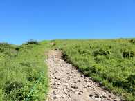 沢渡からスタート地点の車山肩へは登り返します。最後の最後、標高差約180mの登りは、暑くてバテている身には、これはかなりキツイです。 この日の最大の難所がこの沢渡から車山肩への登りでした。 |