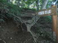 福ちゃん荘の裏手に雷岩への道と大菩薩峠への道の分岐があります。 私たちのこの日の計画は、 上日川峠 → 福ちゃん荘 → 雷岩 → 大菩薩峠 → 雷岩 → 大菩薩峠 → 福ちゃん荘 → 上日川峠 ですので、分岐を雷岩方向へ進みます。 この選択が後で…。 |