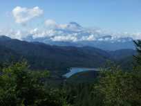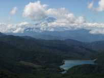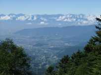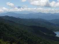 | 木々の間から富士山が見えるではないですかぁ! やった〜♪富士山、ゲット〜☆ そして、違う方向に目を転じると、雲の上に頭を出す山々の姿も。うっわ〜☆ |