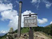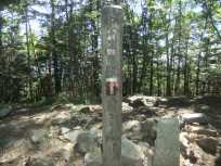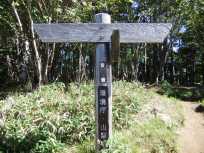 雷岩から10分少々の大菩薩嶺山頂は、木立ちの中にありました。展望はなし。 う〜ん、休憩するならやはり先程の雷岩が展望が良いですから、雷岩でしょう。と、雷岩に戻ります。 先客さま方はまだまだお話しの真っ最中。耳に入って来たお話しからすると、どうやらこの内のお1人は、私たちと同じ日に尾瀬ヶ原にいらしたらしいです。すごい偶然。 |