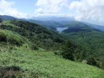 | 更に少し登って振り向くと、今度は湖が見えだしました↑。 |