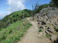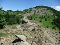 | 足元にも色鮮やかな花が現れ始め、登山道も岩石ゴロゴロばかりではなく、私の大好きな尾根道になったりもします。 | |||