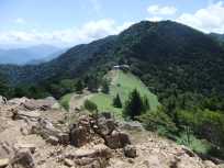 | ←岩山を通り過ぎ、後を振り向くと今まで歩いて来た道がくっきりと見えていました→。 これだけ歩いて来たのかぁ〜。しみじみ。 |