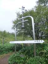 鐘分岐には、風見鶏付きの鐘がありました。鐘があって、それが撞けるものなら撞きます!熊対策? この鐘分岐に着く少し前から雨が上がりだしたので、ここでレインウェアを脱ぎます。雨が上がってラッキー♪と、このときは、単純に喜んだのですが…。 レインウェアの脱いで足取り軽く山歩き☆ |