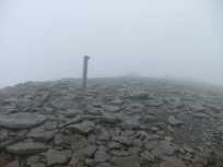 東屋で休憩してから1時間かけて到着した山頂は、見事にガスに巻かれた中にありました。 | |||