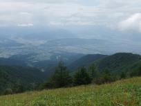 | 烏帽子岳への尾根道に出る頃には、大分、空も高くなってきました。 ここからは、私の大好きな尾根道歩き。 尾根道を挟んで湯ノ丸山とは逆方向に上田の街でしょうか、市街地が見えます。 |