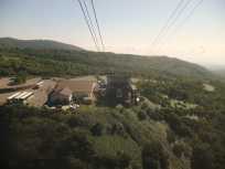 那須ロープウェイの始発時間に合わせて山麓駅の駐車場に到着。 始発のロープウェイで山頂駅を目指す方はそれなりにいらっしゃいます。ゴンドラに余裕を持って乗っていられる人数で始発駅は発車。このくらいの人数だと乗っていても快適です。 ゴンドラの高度が上がると、彼方の雲海が眼下に広がります。 |