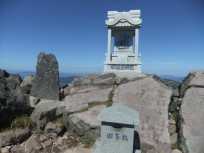 | 南月山の山頂には、山頂標示が3つ、南月山神社の祠、三角点と山頂を示すものがてんこ盛り。 | ||||