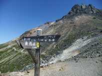 道標と茶臼岳への登山道 |