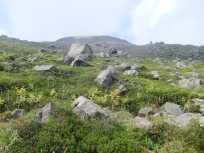 | 峰ノ茶屋跡避難小屋が見えだす頃、足元にはリンドウが群生していました。 | ||