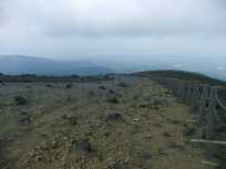 | その方とは、「朝日岳は縦の鎖場と横の鎖場があるから、初心者だったら南月山でよかった」など、お話しを伺いながら、牛ヶ首に戻るまでご一緒させていただきました。茶臼岳のお話しいろいろ、ありがとうございました。 南月山に行って、昼食を食べて、戻ってきたら、茶臼岳の山頂にはガスがかかっていました。 牛ヶ首に戻った私たちは、→の写真の向かって右側の巻き道を進んで、ロープウェイ山頂駅を目指します。 |