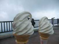 | 那須ロープウェイ山頂駅に到着。ロープウェイの発車時間まで時間があったので、山頂駅でお疲れさま!のソフトクリームをいただきました。 晴天に恵まれ、噴煙の臭いを嗅ぎ、地熱を感じ、地球の鼓動を感じた1日でした。 |