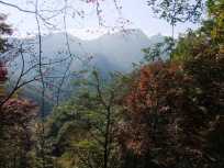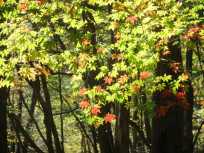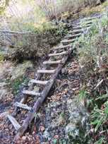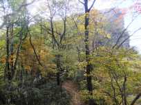 | まず登場したのが木製のハシゴ。かなりドキドキ。そして、写真下中央の鮮やかな紅葉を見たあとに、初体験の横の鎖場出現! | |||||