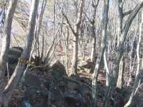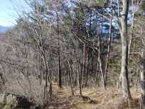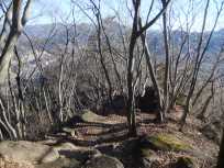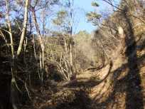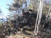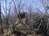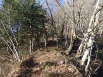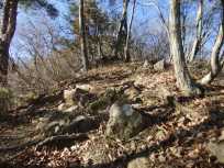 | ロープ場を足元に気を付けて通過。道標に従って高川山へ歩いて行くと、今度は冬枯れの見通しのよい尾根道。変化に富んだ山歩き。 |