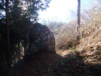 | 気持ちのいい木洩れ日の尾根道をハイテンションで歩いていると、荷物を何も持たず、木の枝を杖替わりにしているおそらく地元の方と思われる男性にアッと言う間に追い越され、すぐに姿が見えなくなってしまいました。“「天気がいいから高川山へ行って富士山に新年の挨拶してくる」とか言って家を出て、午前中に自宅に帰るつもりでは〜”と勝手に話を作ってしまったりして…。 |