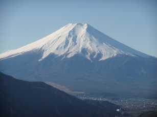 こ〜んな富士山を見ながらのランチが美味しくないわけがありません!!! がんばって寒い中早起きして来た甲斐がありました。 やはり富士山見るなら早い時間だね〜。などと同行者と話しながら、おにぎりを頬張ります。幸せ♪ 富士山の端麗な姿にうっとりしながら、おにぎりを食べていると、続々と初狩駅方向からの登山道から、登山者の方々が山頂に到着して来ました(初狩駅〜大月駅のコースが高川山登山としては最もメジャーらしいです)。 |