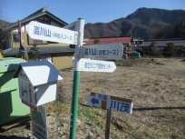 | この分岐で向かって右手の松葉入コースに進みます。ちなみに、帰りは左手の中谷入コースを使って帰ってくる計画なので、田野倉駅を起点・終点にしていますけれども、単純なピストンの山歩きではありません。 しばらくアスファルト道を歩いて、ようやく→の道標のところから登山道に入ります。 |