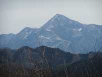 | 四阿屋山山頂は、かなり手狭で長居できそうにない場所でしたので、パノラマを楽しみ、“猫耳”の本名(二子山)を確認できたところで、早速、下山にかかります。 登りよりも苦手な下り。それが足元がアイスバーン。岩の上に腰を掛けるくらいの勢いで重心を落として下ります。 再び両神神社奥社まで、無事に下りられたときには、安堵のため息が漏れました。 |