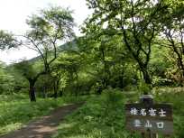 ←登り始めとは反対側の登山口まで下山。 ここから、榛名湖近くの一般道を烏帽子ヶ岳の登山口まで歩いて移動します。 |