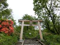 | 榛名山ロープウェイの山頂駅から一登り。←の鳥居の上が榛名山の山頂です。 山頂には、コンクリート造りのお社が鎮座していましたが、扉が固く閉ざされていたので、門扉の前で手を合わせました。 |