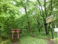 | 烏帽子ヶ岳の登山口に到着。 烏帽子ヶ岳の登山道は、鳥居の奥に続いています。 鳥居をくぐり、道標に従って歩いて行くと、程なくしてまた鳥居が出現します。 |