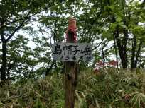 | 山頂標示の写真を撮って、そそくさと下山。鞍部に戻ります。 | ||
