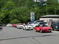 | 湖畔の一般道を歩いていると、クラシックカーが大挙して走って来ました。何かクラシックカーの大会のようなものが開催されていたようで、この近くがゴールだったようです。 榛名湖畔はクルマ通りが激しいので、湖畔の散策路に入ります。 |