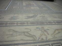 「ミレトスの市場門」とその向いにある建物の展示物との間の床には、モザイクが展示されています。