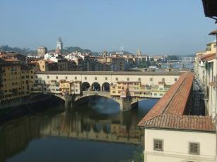 ウフィッツィ美術館からヴェッキオ橋を眺める