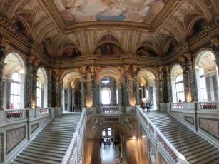 美術史美術館の絵画コレクションは2階。2階へ向かう階段、階段ホールの天井画からして、既にアートしています。