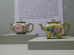 陶磁器のエリアには、様々な形の色鮮やかな器の数々。