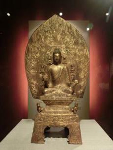 ← の釈迦牟尼佛座像は、北魏の時代のものだそうです。約1500年前の仏像。それがこれだけの完全なお姿で残っているとは。