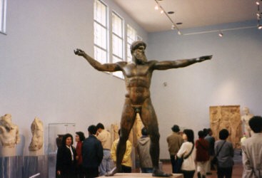 アテネの守護神であるアテナ像。 なのだが、なぜか、某コミック(某テレビアニメ)でこのアテナ像をモチーフにした絵をたくさん見た気がしてならない。(笑) ※ギリシア神話におけるオリンポスの12神とは 1.ゼウス(最高神) 2.ヘラ(ゼウスの妻、家庭の女神) 3.アポロン(太陽、芸術の神) 4.アテナ(戦いの女神) 5.ポセイドン(海の神) 6.ディオニソス(酒の神) 7.アフロディーテ(美と愛の女神) 8.ヘルメス(商売の神) 9.アルテミス(月と狩猟の女神) 10.アレス(戦いの神) 11.ヘファイストス(鍛冶の神) 12.デメテル(大地の女神) |