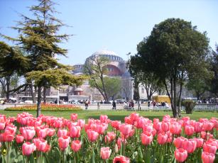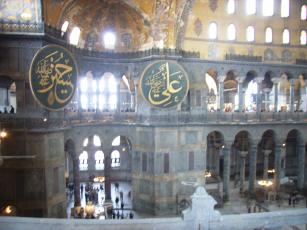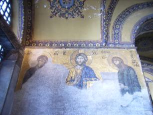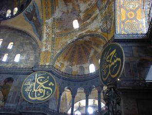 360年にコンスタンティヌス2世の時代に完成し、537年からビザンチン様式の聖堂として再建され、ビザンチン帝国時代が終わりを告げるまでギリシャ正教の総本山だった。1453年、コンスタンティノープル陥落後、メフメット2世によりジャミイに改められ、モザイクは漆喰に塗りこめられた。トルコ共和国となった1934年にアタチュルクによって博物館として開放されるという数奇な運命を辿ったアヤソフィア。