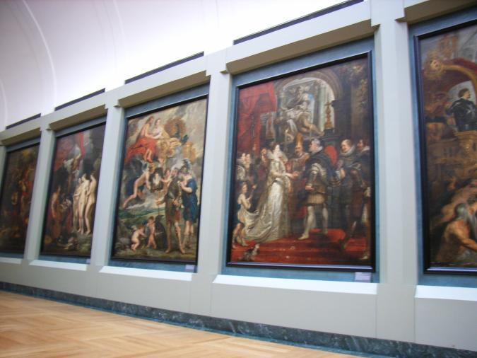 | 本日最大の目的を果たして安堵する。次は、ここも押さえておきたいルーベンスの『王妃マリー・ド・メディシスの生涯』の連作がある部屋だ。 元は宮殿であったルーヴルの広い部屋の4面全てを使って展示された様はまさに圧巻。 『モナ・リザ』からは展示室が若干遠いけれどもお気に入りの場所の一つ。 |