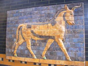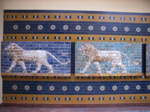 入り口を最初に目についたのが上の動物たち。これがバビロンのイシュタル門の彩色レリーフのようです。これが何十枚も連なっていたらさぞかし壮観だったことでしょう。