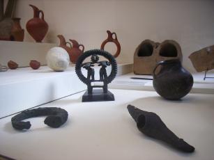 左の写真の中央はアナトリア文明博物館で見た青銅製のスタンダードとよく似た感じなので撮影しました。アナトリア文明博物館のスタンダードは動物が3頭で、こちらは2頭ですね。