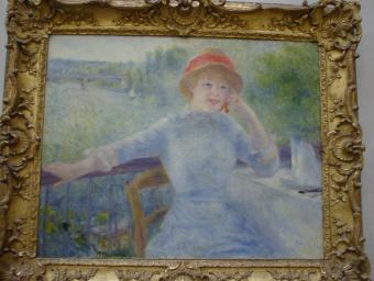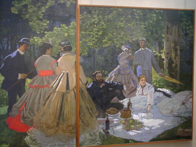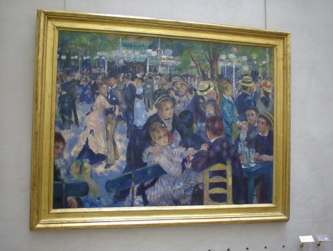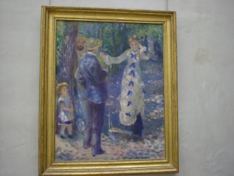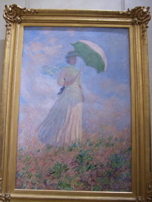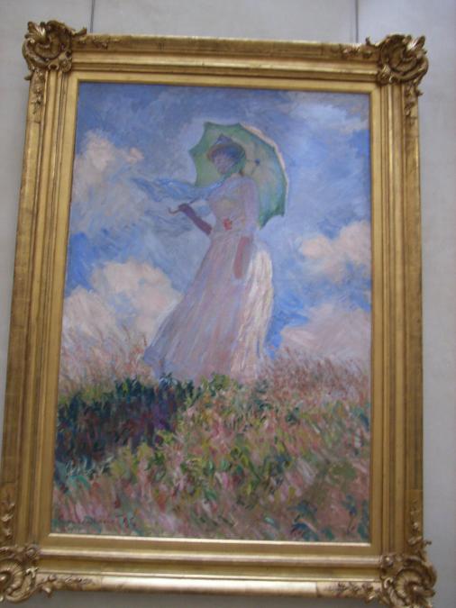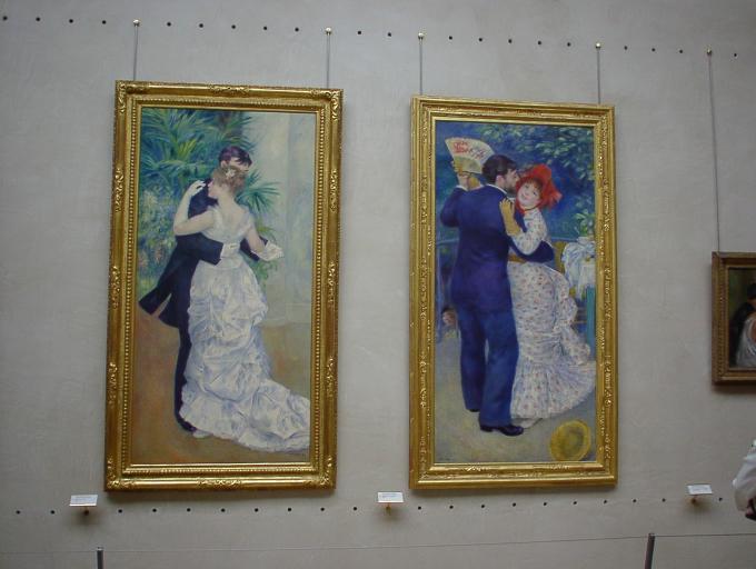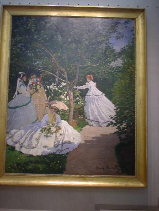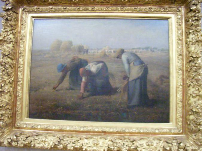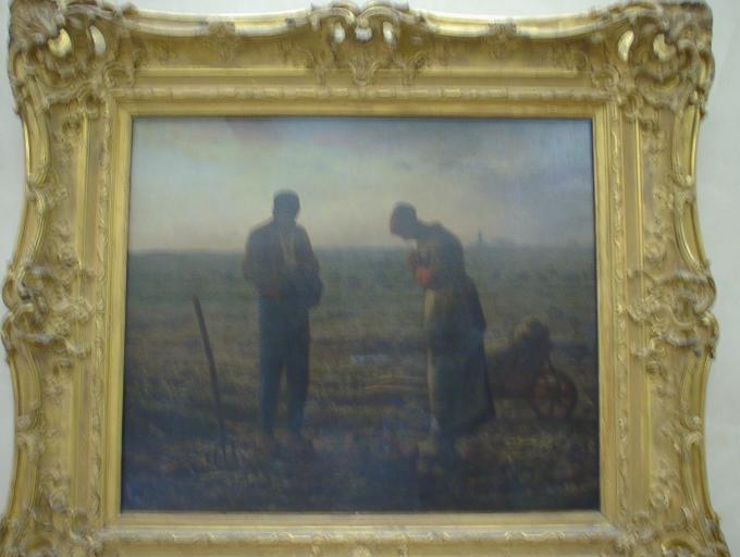 | 満腹に満足して、地階(日本でいう1階)から見学開始。 地階・上階(日本でいう3階)が絵画、中階(日本でいう2階)が彫刻に展示が大分されている。 上階から開始して下に降りてくる手もあるけれど、今回はまずは地階でミレーの『晩鐘』と『落穂拾い』とご対面するコースを選んだ。ミレーの作品は美術館入って向って左手からスタートすると間もなく会える。 すっかり喜び勇んで、間近で観たり、遠くから全体像を鑑賞したり、楽しみはつきない。ルーヴルと比べて部屋自体は小さく区切られているので、離れるといっても高が知れてはいるが…。 ルーヴルより狭いけれど、「ルーヴルよりは狭い」であって、普通に考えるとかなり広い美術館なので、長蛇の列して入場しても、何時の間にか、それなりの混雑具合としか感じないくらいの人が鑑賞中の部屋に出入りするくらい。 |