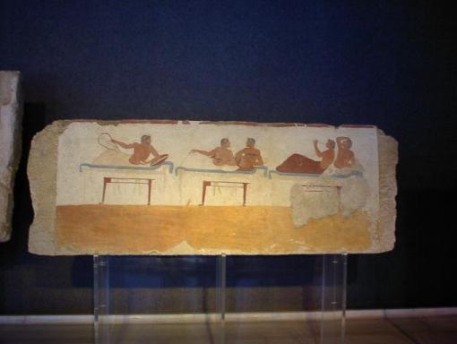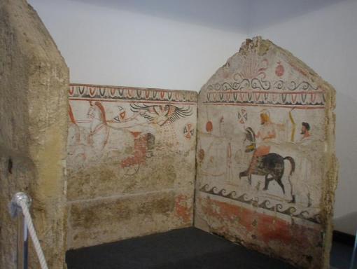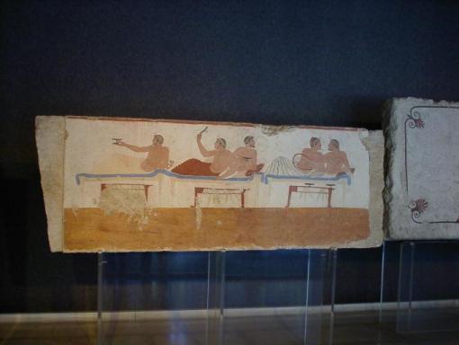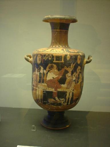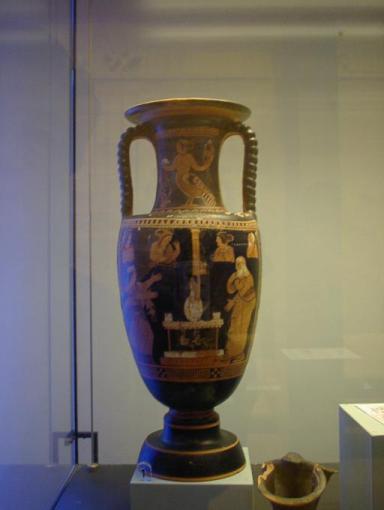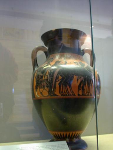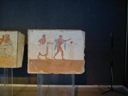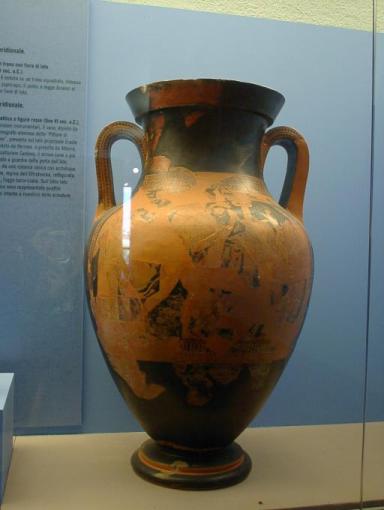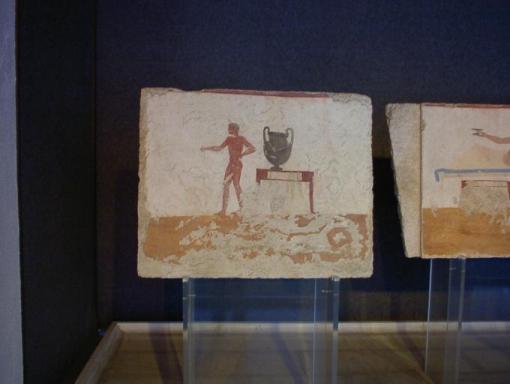 | パエストゥム考古学博物館の展示品はパエストゥム遺跡の出土品 黒絵の壷 |