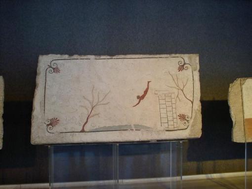 | 飛び込み男の絵 側面 棺の蓋の向って右手に展示 |