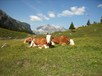 山と草原と牛!スイスだ!(←意味不明)→