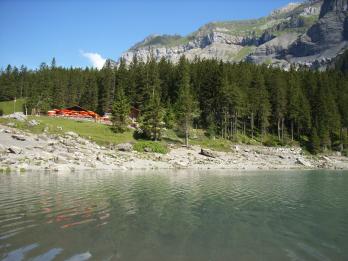 個人でスイスを旅行される方々がユングフラウ⇔ツェルマット間の移動で、エッシネン湖に立ち寄られるのを勧めてらっしゃるのがよく判る。納得なハイキングコース。