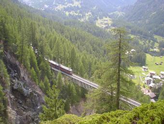 疲れてきたのでこの鉄橋のところから、線路沿いに歩いてショートカットしてツェルマットの街に戻る。この途中、線路沿いでまた大きな鹿を目撃。こんな人里近い所に出没しているのに驚く。