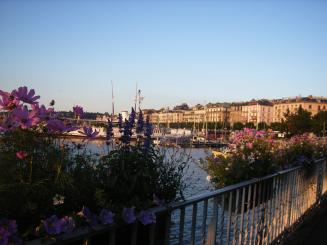 レマン湖とお花とボートとホテル。のんびりとボーっと景色に見入ってしまいます。