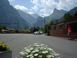 レストランからバスで数分のカンデルシュテーク駅からカートレインに乗車です。