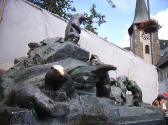 マーモットの小噴水の後ろ側が、民族博物館とかを建設中で、工事中の幕なのが残念。マーモットの頭が皆さんに触られてピカピカです。