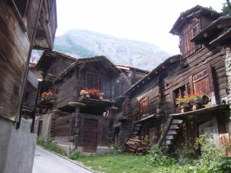 マッターホルンの撮影ポイントを見つけながら、スネガ展望台行きのケーブルカー乗り場の上の道をマッターフィスパ川沿いに教会が見える場所まで行って橋を渡って教会、マーモットの小噴水へ向う散策です。
